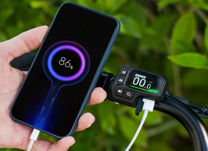 The bike’s LCD display also features a built-in USB port that can be used for charging your phone’s battery when necessary.