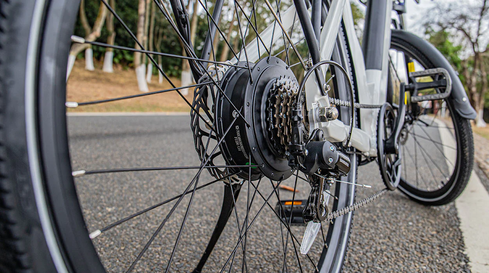 For powering its rear-drive system, this electric city bike comes equipped with a powerful 500W rear hub toothed brushless motor which boasts 55nm of torque and a peak power of up to 678W, making it capable of reaching up to a maximum speed of 24.85 mph / 40 km/h.